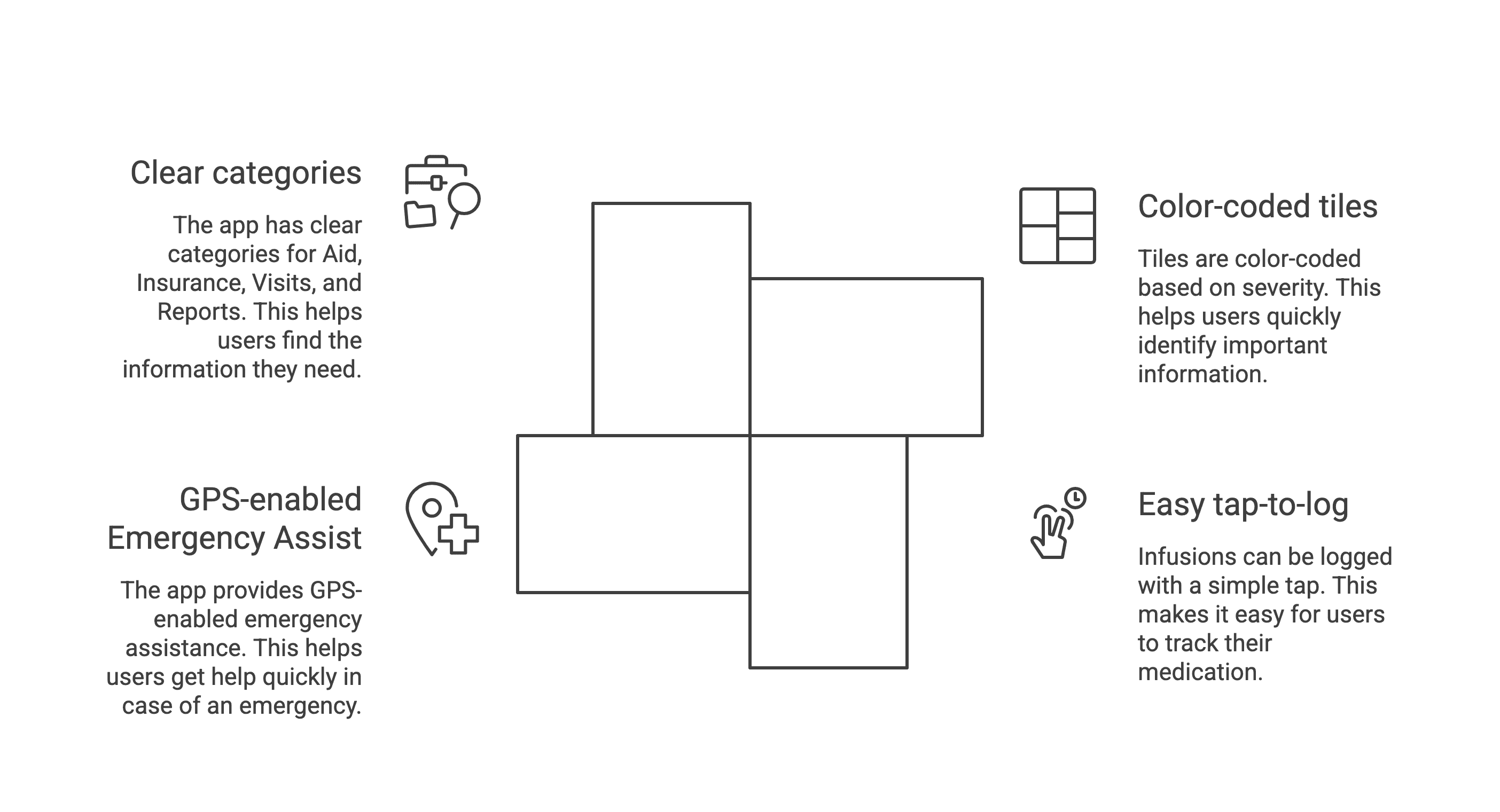 ✔ Support low literacy with icons, colors, and simple flows